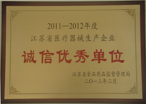 江蘇省誠信優(yōu)秀單位